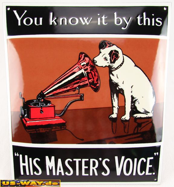 Emaille Schild - Master Voice | Emaille Schild - Mobiloil |