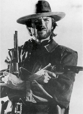 John Wayne, mit Revolver | Clint Eastwood, with 2 guns | |